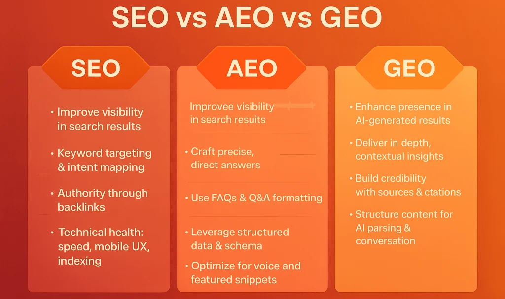 為什麼 SEO + AEO + GEO 是未來內容策略不可或缺的三支柱