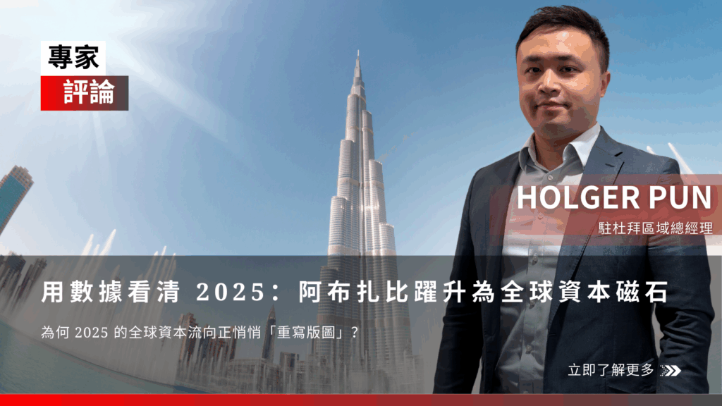UAE Investment Strategy 阿聯酋投資攻略 世界市場消息, 中東阿聯酋, 中東阿聯酋投資攻略, 專家評論 2025 杜拜超豪宅市場新週期:從「黃金三角」到新興百萬豪宅帶,全球資本如何重新定義超級資產? 2025 年,杜拜的超豪宅市場正進入一個全新的成熟階段。根據最新市場研究,價值 4,000 萬迪拉姆(約 1,090 萬美元)或以上的別墅交… 3 weeks ago 世界市場消息, 中東阿聯酋, 中東阿聯酋投資攻略, 全球房地產 Bashayer Villas & Residences:阿布扎比 2025 最具代表性的海濱住宅項目正式倒數 隨着 12 月 9 日的臨近,位於 Hudayriyat Island 的 Bashayer Villas & Residences… 3 weeks ago 世界市場消息, 中東阿聯酋, 中東阿聯酋投資攻略, 專家評論 用數據看清 2025:阿布扎比如何從區域城市躍升為全球資本磁石? 在全球經濟進入多重變革的 2025 年,資本流向正悄然重塑世界版圖。歐美市場在高息環境、政策不確定性以及房價疲弱的壓力下,增長普遍放緩;但與… 3 weeks ago Latest Articles | 最新文章 1 09 Dec Etihad Credit Insurance 保證額突破 2.72 億美元,保險出口逾 4.1 億美元 2 09 Dec 海灣新鐵路時代:785 公里連接沙特與卡達 3 04 Dec 【UAE移居指南】家長必讀!如何為子女選擇杜拜及阿布扎比國際學校? 4 02 Dec 從 SEO 到 AEO/GEO:迎接 AI 搜尋時代的新內容策略 | AI專欄 5 02 Dec 2025 東亞房地產重大變局:五大趨勢正在重塑跨境買家的投資方向 6 02 Dec 【入行多年,從越南到中東】跟著金錢流向走,今天我們為什麼看好阿聯酋? 7 02 Dec 【收到的不是訊息,是一份厚重的信任】帶著這份感動,我出發去杜拜了 8 02 Dec HashKey闖關上市成功:虛擬資產如何同中東市場聯動? 9 01 Dec 海外置業熱潮:樓市投資必看的「黃金鐵三角」法則 10 28 Nov 血色帳單:大埔五級火背後,香港維修工程的「死亡經濟學」